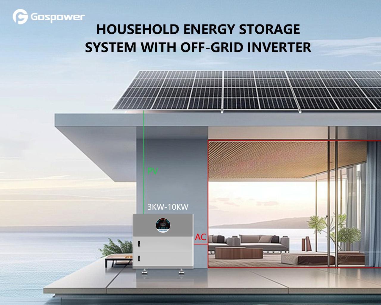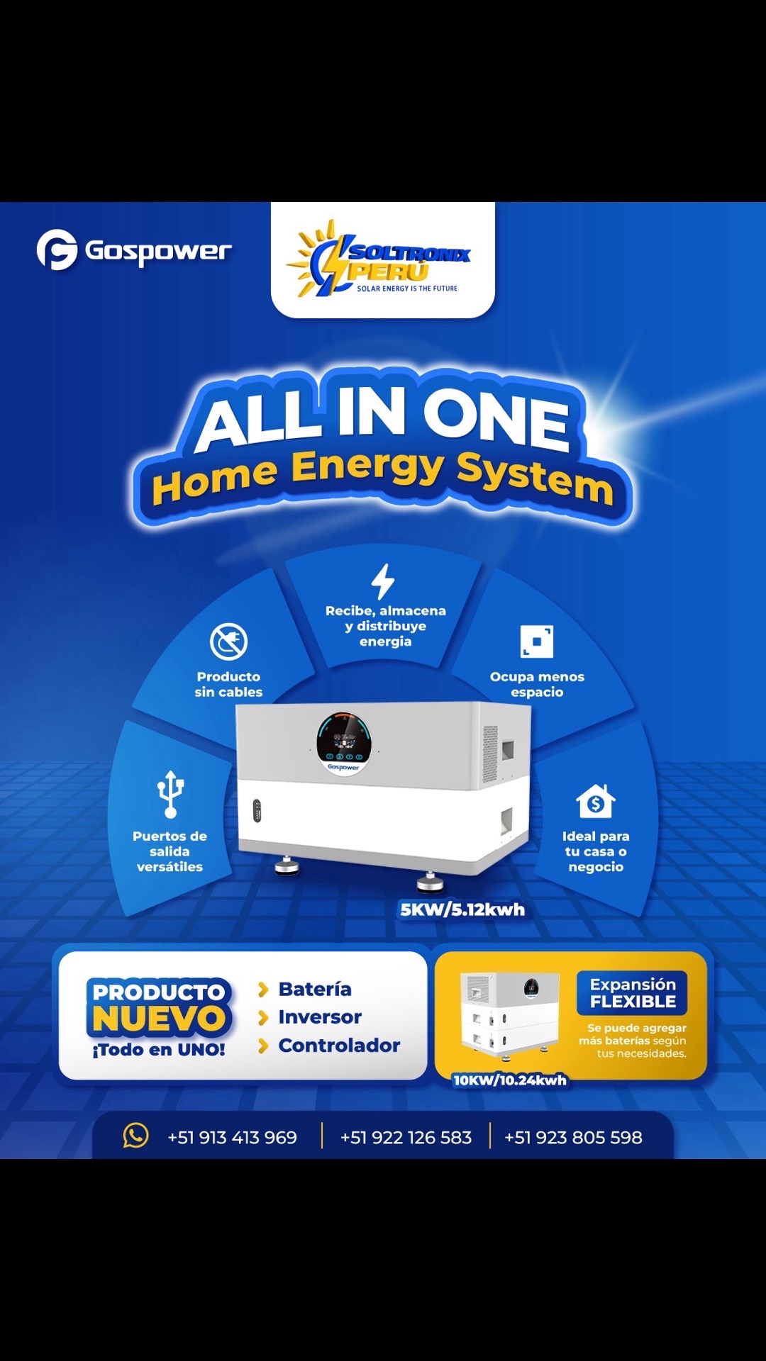 Equipo gospower, nueva tecnologia con salida de 10kw – 48v incluye 1 banco de bateria de 100ah – 48v equivalente 5.12kwh