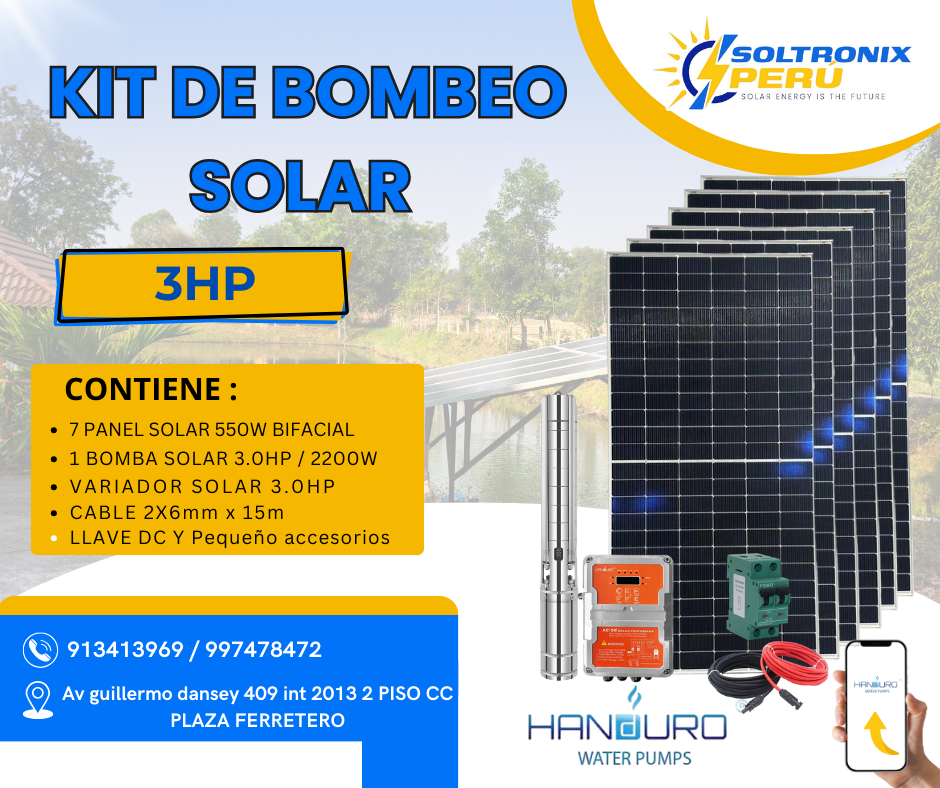 - 1 BOMBA SOLAR 3.0HP / 2200W